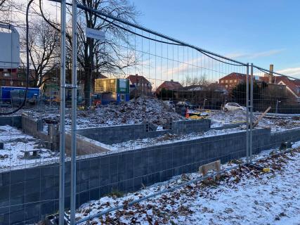 Nu da arkæologerne har afsluttet deres arbejde på grunden, og givet grønt lys til at byggeriet kan fortsætte, er der så småt kommet gang i byggearbejdet igen. Fundamentet er nu ved at blive lagt og snart vil selve huset også begynde at rejse sig. Afbrækket med de arkæologiske udgravninger har forplantet sig en smule i tidsplanen. Byggeriet forventes færdiggjort i sensommeren 2021.