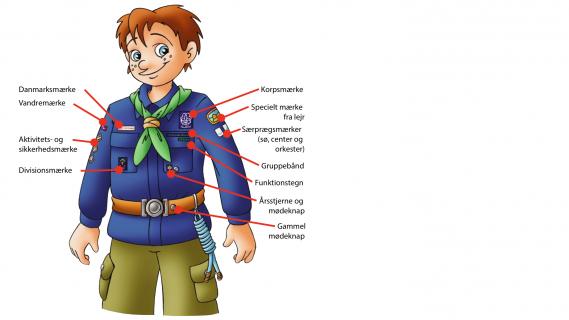 - Hovedtørklæde, spejderbælte og lederskjorte, der forhandles af Spejder Sport
